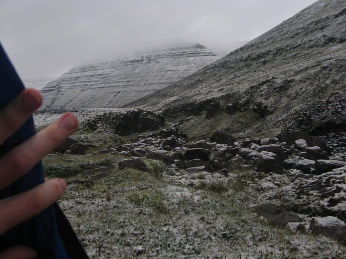 Schnee im SuðurárdalurLittle surprise in the morning: snow in Suðurárdalur