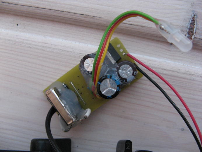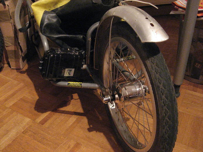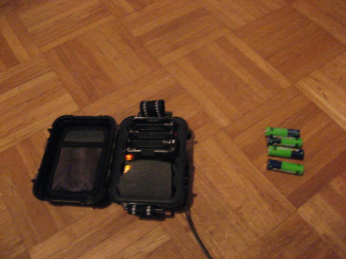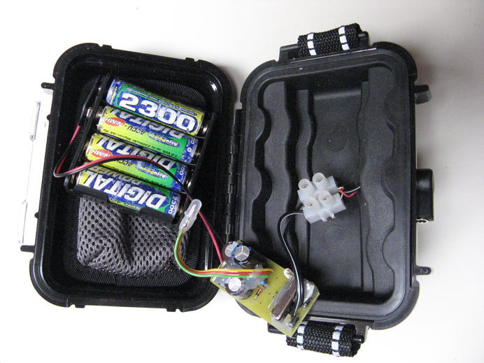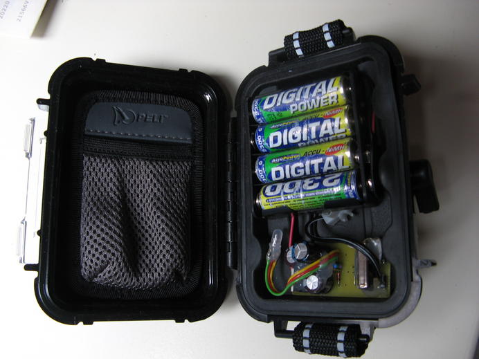Ladegerät und Gehäuse Über das eigentliche Ladegerät gibt es wenig zu sagen, denn das habe ich nicht selber gebaut und mir schon gar nicht selber ausgedacht. Alle Informationen gibts auf der Forumslader-Homepage, die aus dem Rad-Forum entstanden ist. Jens hat nicht nur die Seite gebastelt, sondern freundlicherweise extra für mich auch ein Ladegerät. Da ich recht einfache Anforderungen hatte und insbesondere kein Standlicht oder eine unterbrechungsfreie Stromversorgung brauche, ist es die 6V-Version des Ladegeräts geworden, basierend auf der Uniplatine und gut eingedeckt mit Epoxidharz. Die fertige Platine ist recht überschaubar, aber eben auch noch nicht ganz fertig. Es fehlen noch ein Batteriefach, allerlei Kabelverbindungen und vor allem ein Gehäuse. Insbesondere beim Gehäuse habe ich lange überlegt. Einerseits sollte es stabil sein, wasserdicht, staubdicht, unverwüstlich. Andererseits bräuchte ich so einige Anschlüsse, zum Dynamo hin, einen 6V Ausgang, einen Platz für die LED und insbesondere ein Fach für die Batterien. Nach einigem Hin und Her hab ich mich schließlich auch hier für die Minimal-Variante entschieden: kein Ausgang, keine LED, dafür für die Ewigkeit gebaut. Ein Peli-Case i1010. Das Gehäuse ist eigentlich für den iPod gedacht, so als Schutz. Und natürlich möchte man als iPod-Besitzer auch Musik hören, daher der Clou am Gehäuse: eine 3.5mm Kopfhörer-Buchse. Statt Musik rauszulassen, kommt über diesen Anschluss jetzt Wechselstrom vom Dynamo rein. Innen siehts dann etwas unaufgeräumt aus. Aber so alles in allem passts ganz gut. Der Plan ist nun, abends und morgens im Zelt jeweils das Batteriefach zu befüllen und zu leeren. Tagsüber soll die Kiste dann irgendwo hinten dran hängen und es ist mir egal, was sie macht, ob sie schon fertig geladen hat oder noch nicht. Erfahrungswerte über die Ladedauer in meinem Aufbau mit 16" Laufrad fehlen mir noch, aber angeblich reichen etwa 5-6 Stunden für 2000mAh-Akkus. Hauptsache abends ist alles wieder voll! | |