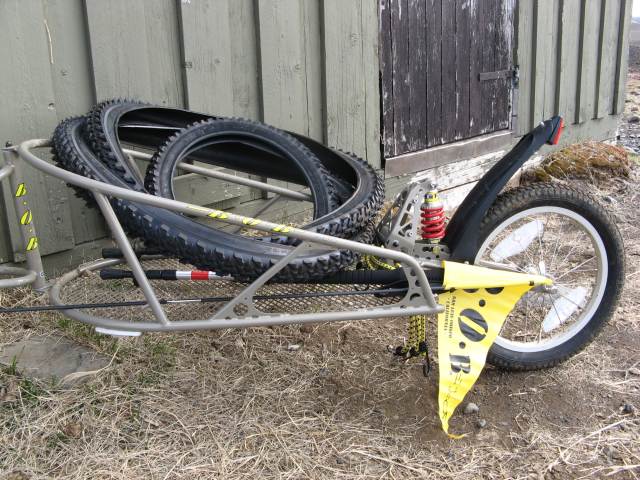 Fazit: Kinderanhänger und bierkastenformatige Zweiradanhänger passen gut auf ebenen Untergrund (Straßen etc.) und halten dort die Fracht gerade über dem Boden; Einradhänger sind auf Singletrails nicht so sperrig und schaukeln auch nicht ständig von einer Seite auf die andere. | |
