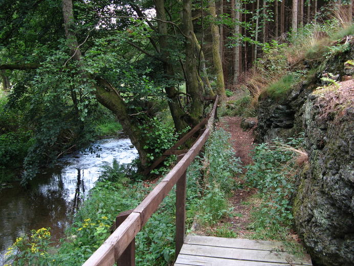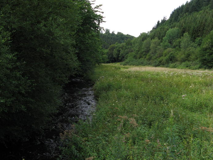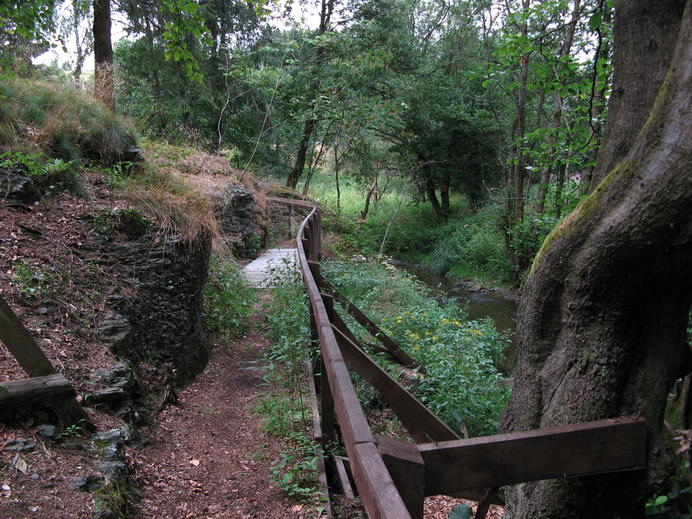 Losgelaufen bin ich zunächst am Flüsschen Wadrill entlang auf diversen Wanderwegen bis zur Ruine der Grimburg. Danach war ich in Rheinland-Pfalz und nicht mehr im Saarland, und meine Karte war zu Ende. Ich bin einfach weiter dem Fluss entlang bis nach Reinsfeld gelaufen, wo ich wieder in irgendeinem Hotel übernachtet hab. Am nächsten Tag musste ich über den "Kamm" des Hunsrück, dann war ich auch schon an einem Fluss namens Riveris, der bald in die Ruwer mündete und die wiederum mündet etwa bei Trier in die Mosel. Obwohl es mir insgesamt etwas weit erschien hab ich das Ganze trotzdem in anderthalb Tagen geschafft und hatte somit noch einen ganzen Tag für Trier Zeit...