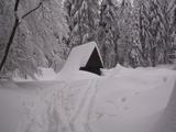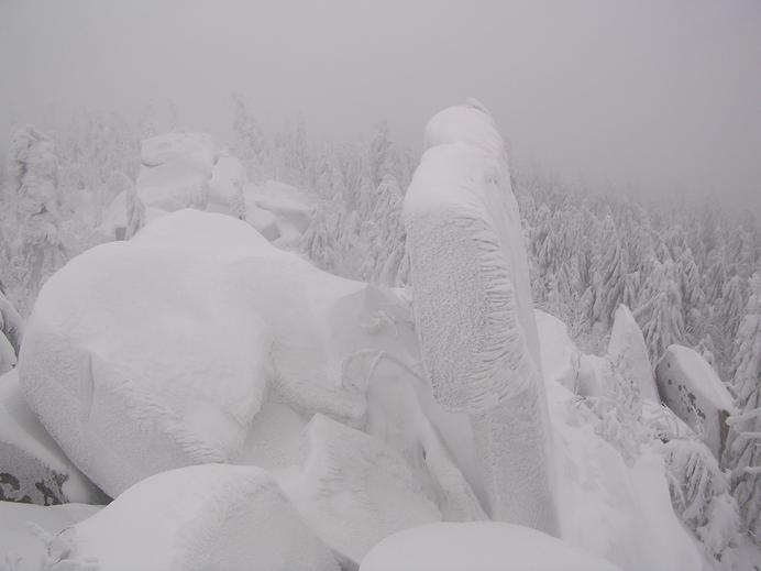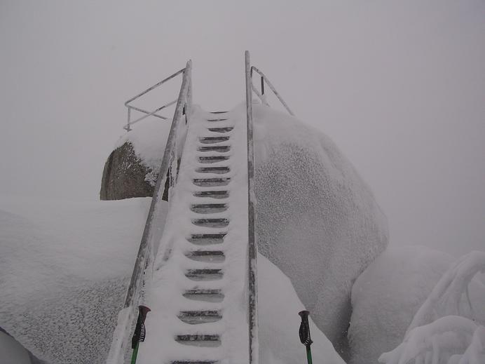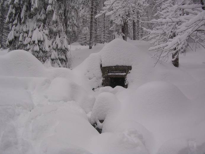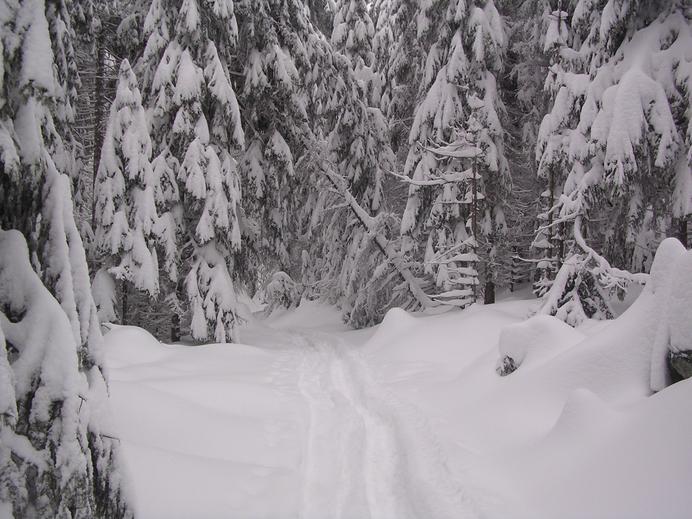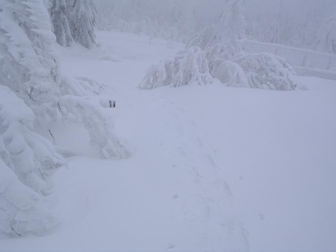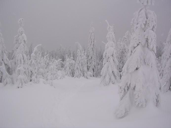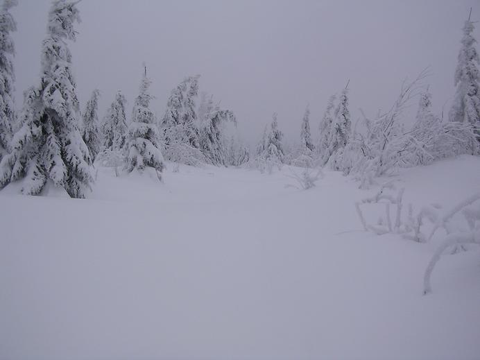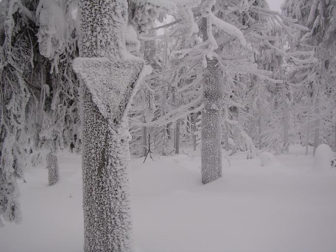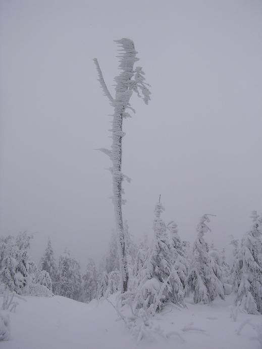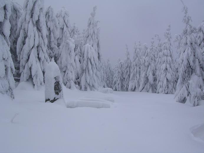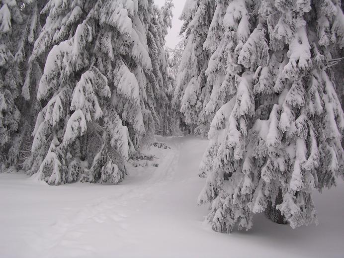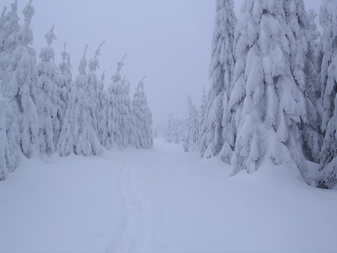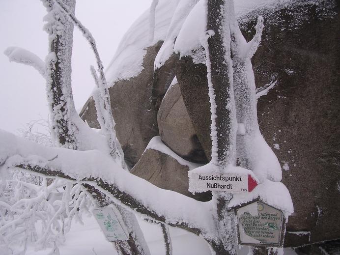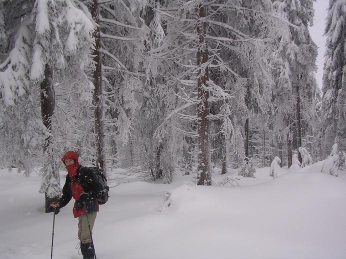 Teil 2 der Bilder entstand am 29.12.2005. Ich legte im Seehaus los, erstmal nordwärts auf den Nußhardt, dann weiter auf den höchsten Berg der Region, den Schneeberg. Beim Abstieg bin ich am Haberstein vorbeigekommen, hab mich dann mal wieder ein bißchen nicht zurechtgefunden, und erst nach einigem Suchen nach Karches gefunden. Nachdem gerade erst Mittag war, folgte ich dem E6 zur Weißmainquelle und bin danach schnurgerade auf den Ochsenkopf gewandert. Das Gipfelhaus war mir aber zu sehr Rummelplatz, deswegen hats nicht mal für ne heiße Schokolade gereicht, und ich war schon wieder am Abstieg. Mit Schneeschuhen kam ich richtig zügig durchs dichte Unterholz, irgendwann dann nach Warmensteinach, wo ich mir spät abends noch verzweifelt eine Unterkunft gesucht hab. Hochsaison.
