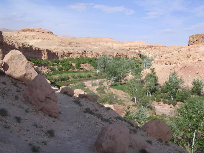 Green riverbed in the desert north of Ait Benhaddou