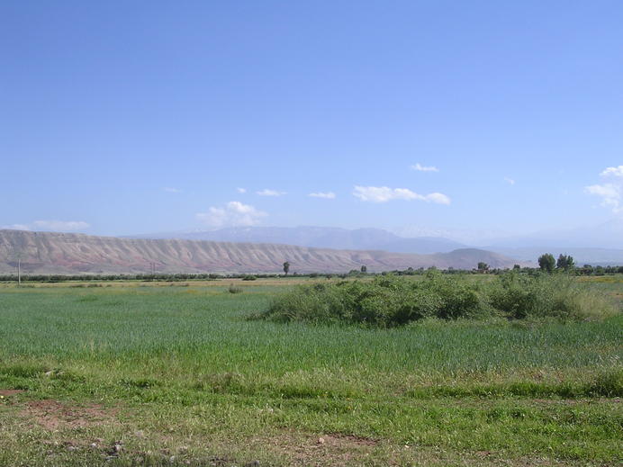Mountains south of Ait Ourir and the High Atlas behind