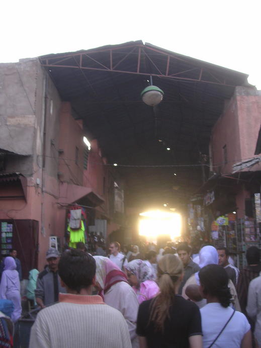 Suq with a roof and sunlight from Djamaa el Fna