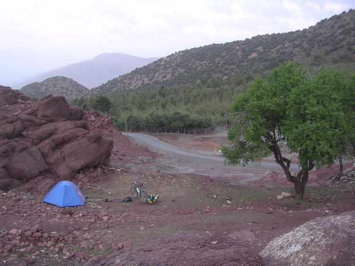 Mein Zeltplatz, versteckt hinterm Felsen aber auch etwas steinig