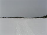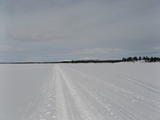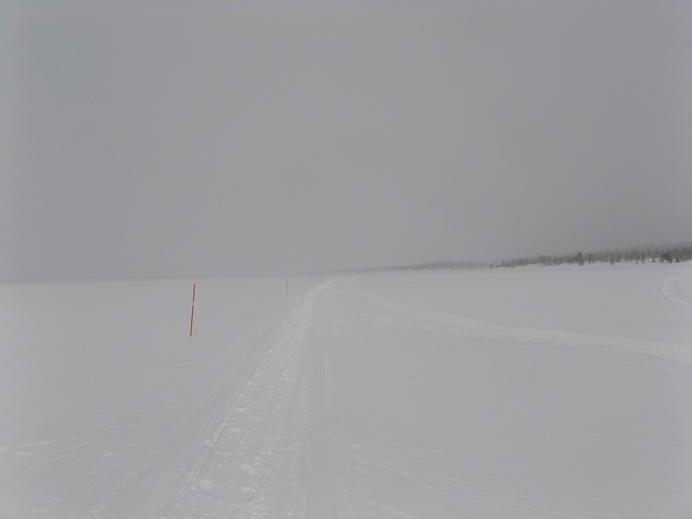 Die Eisfläche war ziemlich langweilig. Sehr flach und vor allem schien sie gar kein Ende nehmen zu wollen. Noch dazu gab es eine ordentliche Brise mit leichtem Schneefall geradewegs ins Gesicht. Andrerseits wäre die Aussicht auf den Bergen ringsherum bei dem Wetter auch kaum besser gewesen.