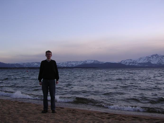 Olaf am Strand von Lake Tahoe