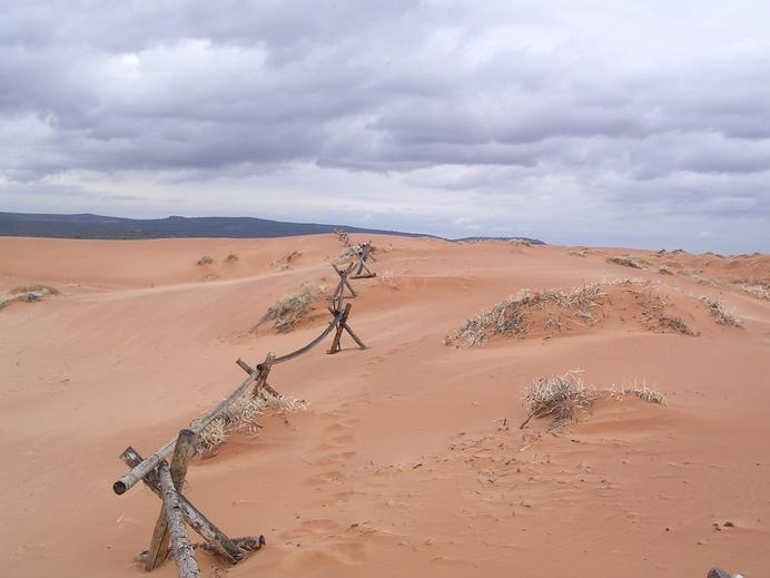 Ein Zaun mitten in den Coral Pink Sand Dunes
