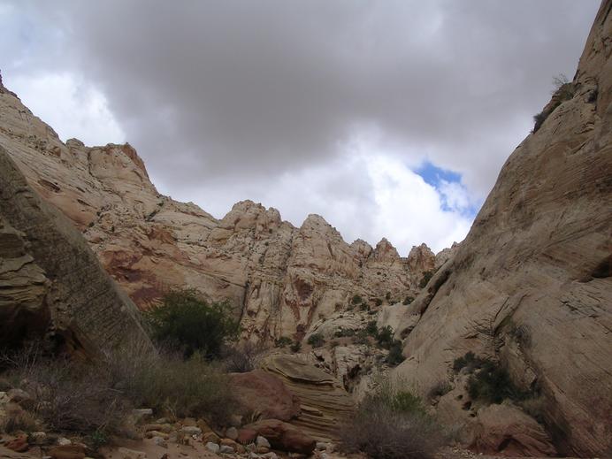 Steil aufstrebende Felswände am engen Grand Wash Canyon