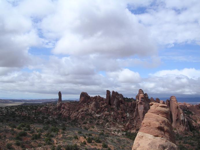 Blick vom Double O Arch auf Devils Garden und den Dark Angel