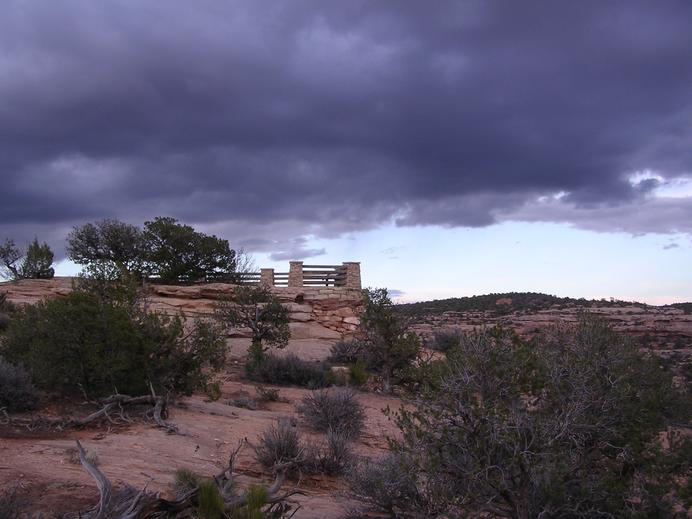 Dunkle Wolken an einem der Aussichtspunkte im Natural Bridges NM