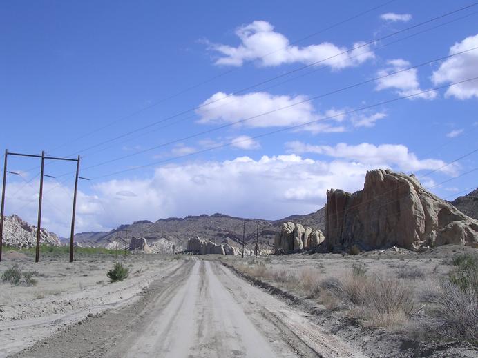 Straße und Stromleitung teilen sich das Tal der Cockscomb