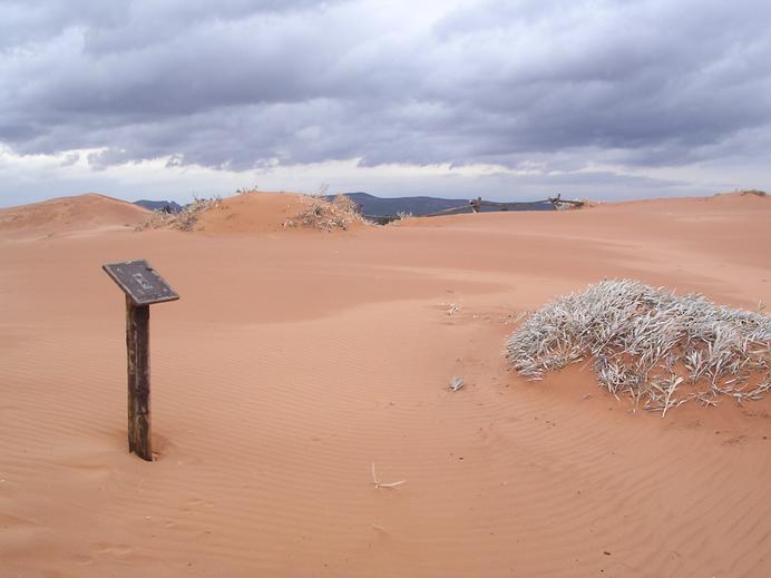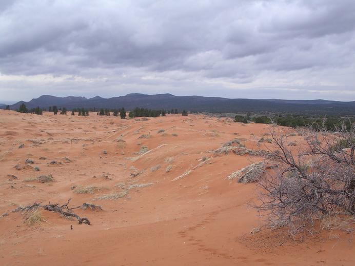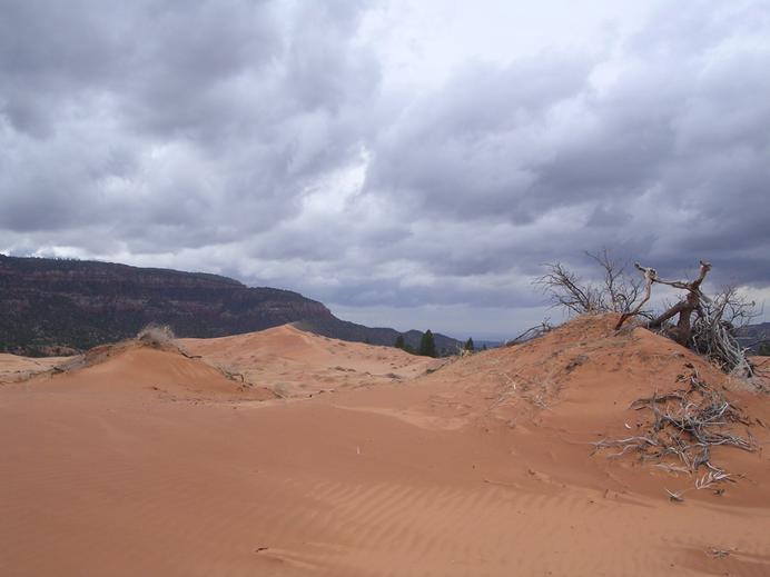 Dunkle Wolken und viel Sand im Coral Pink Sand Dunes SP